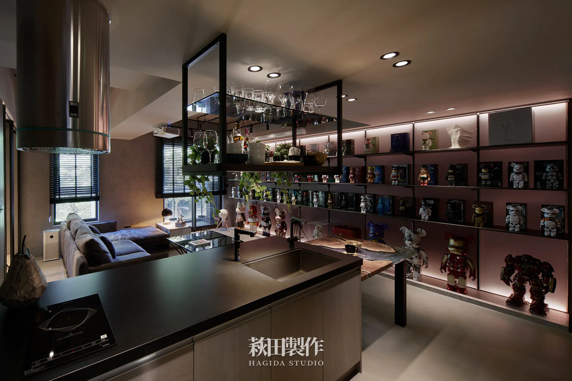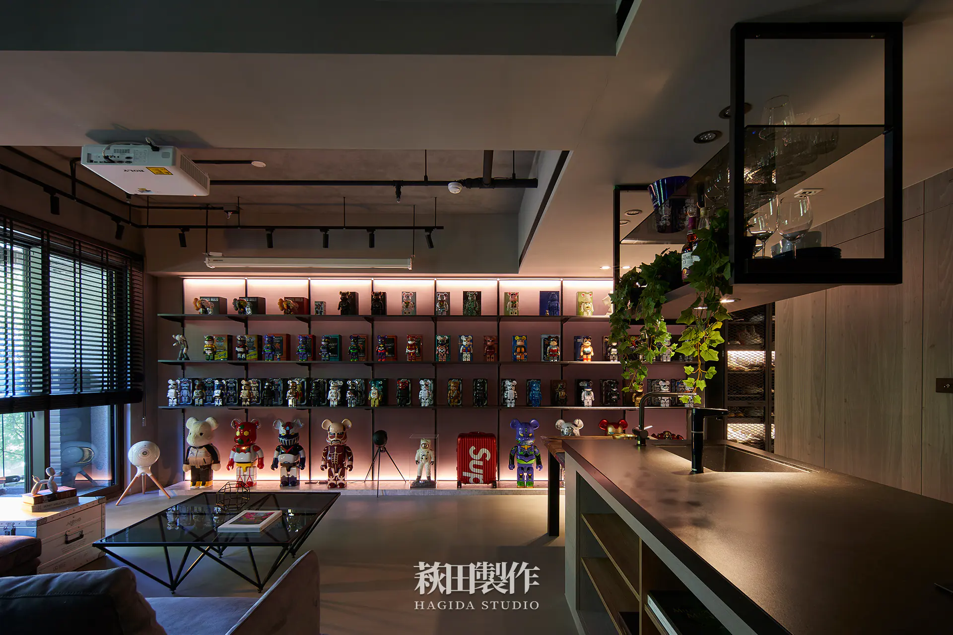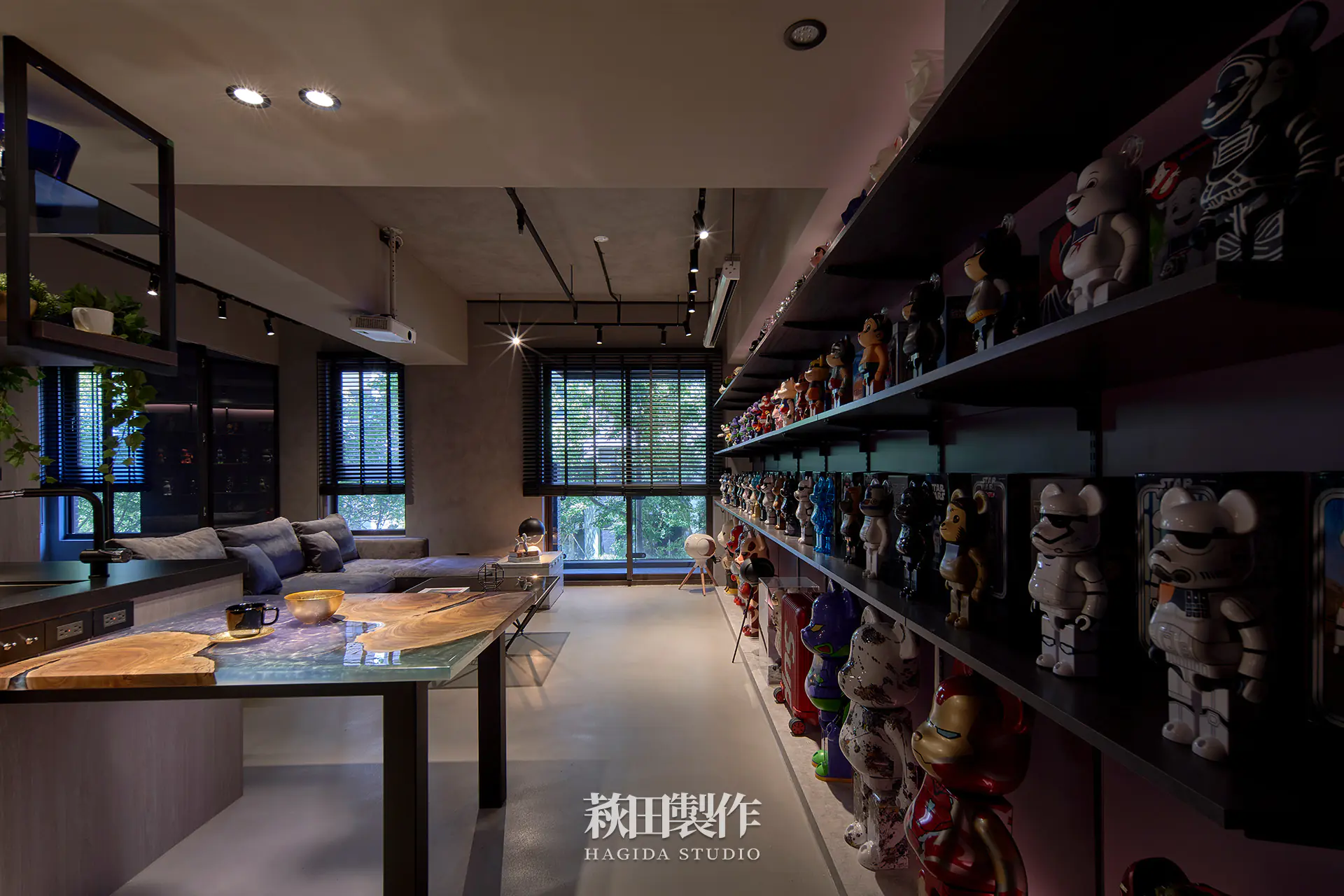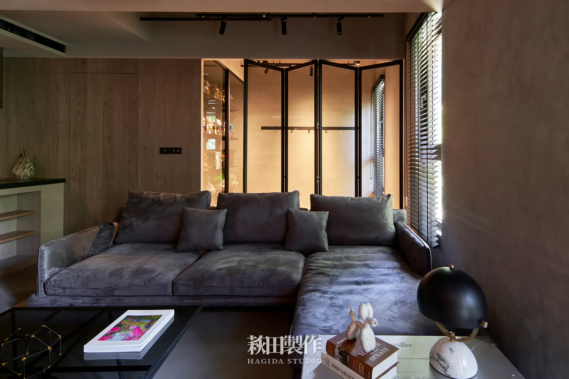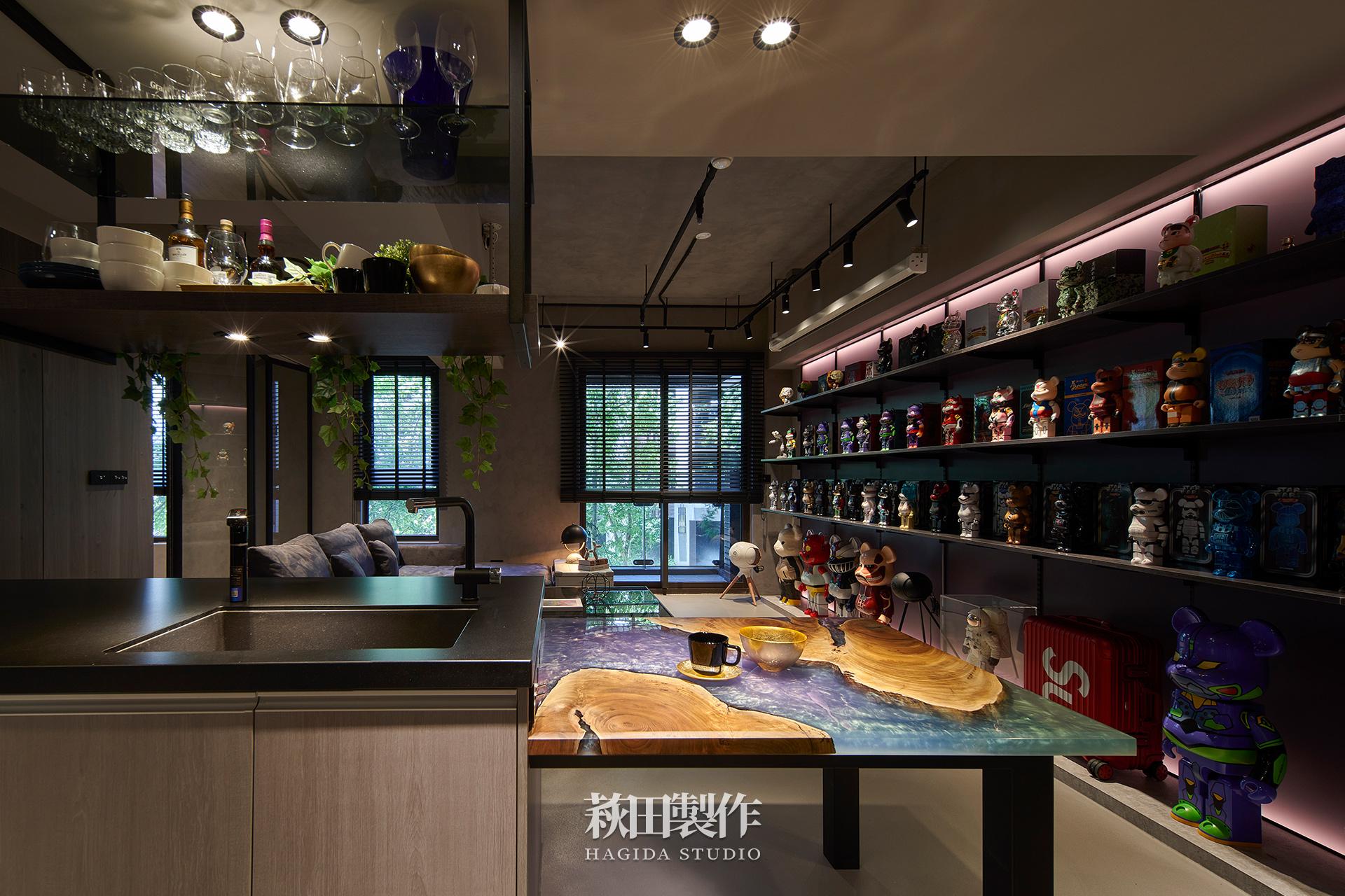 主要建材:特殊塗料、地板全室優的鋼石、深色進口木百葉、進口風琴簾、進口賽麗石中島、訂製環氧樹酯餐桌、系統櫃