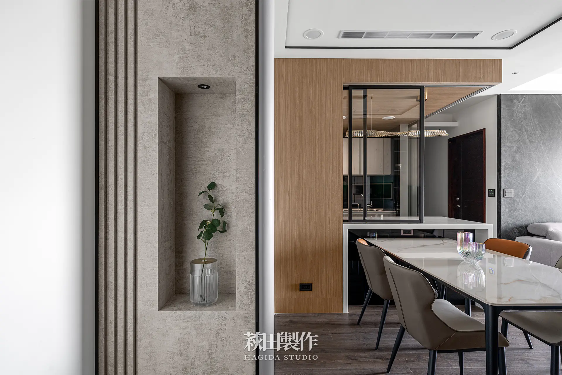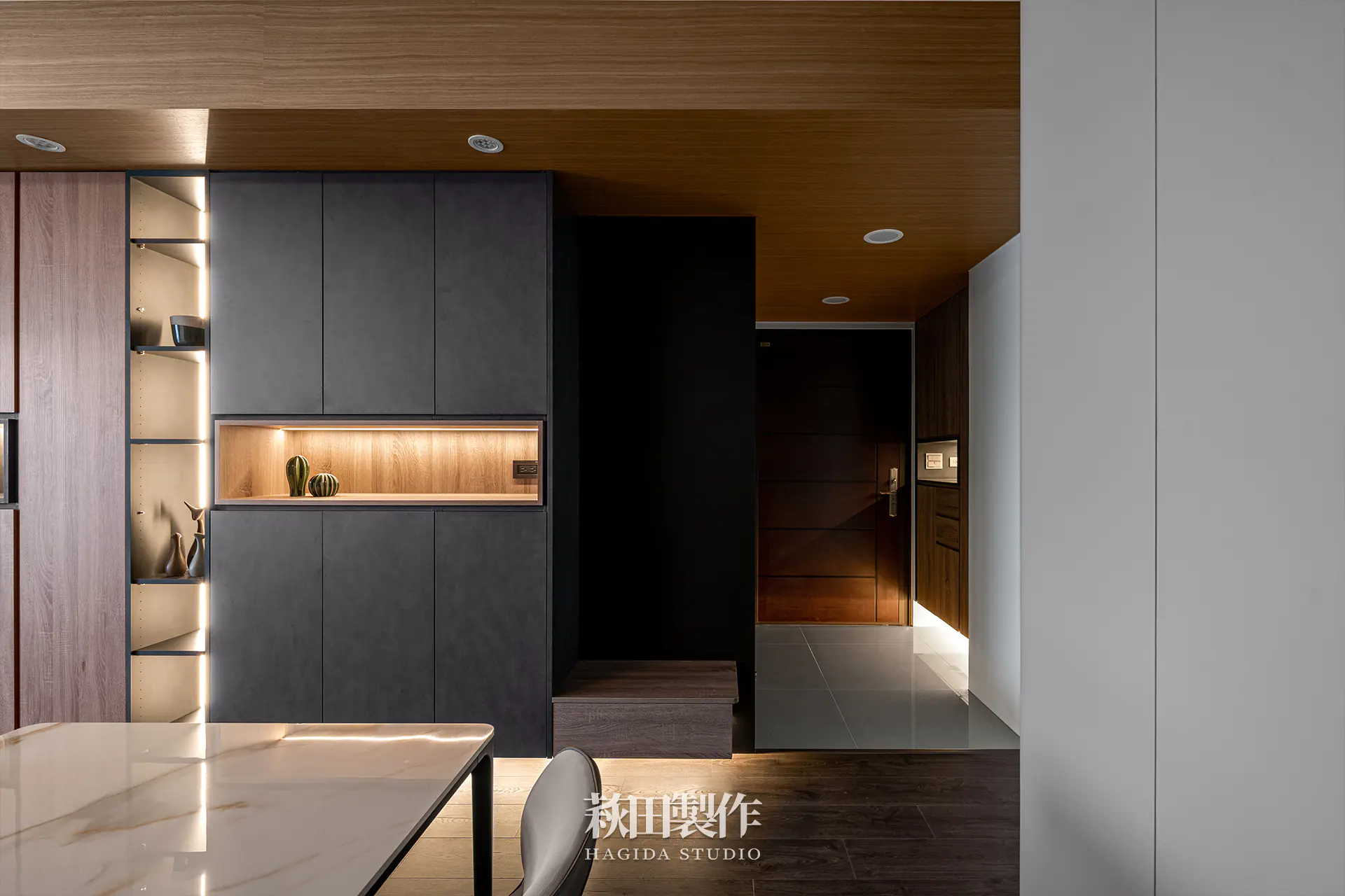 主要建材:木皮、酸蝕玻璃、美耐板、鐵件、長虹玻璃、