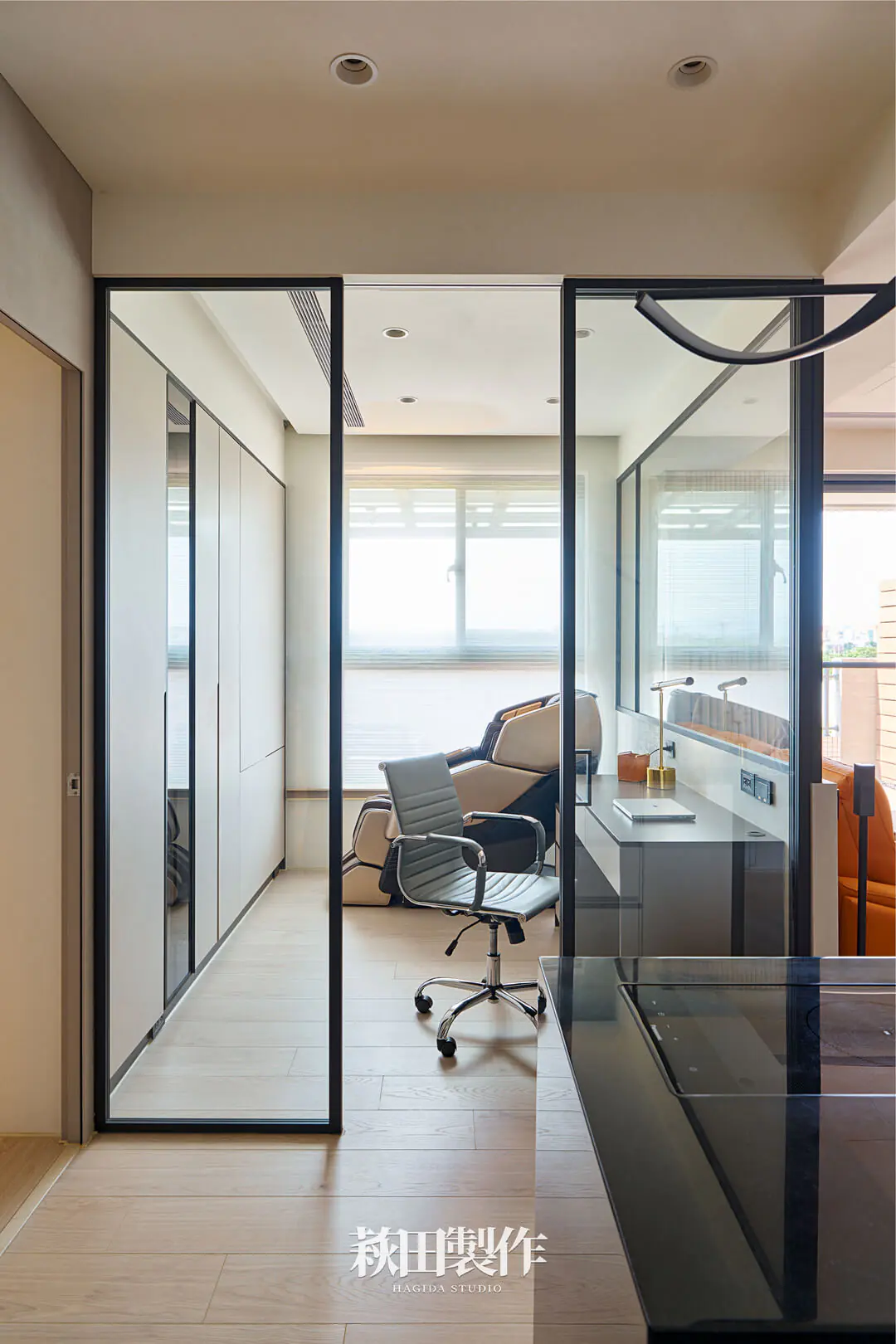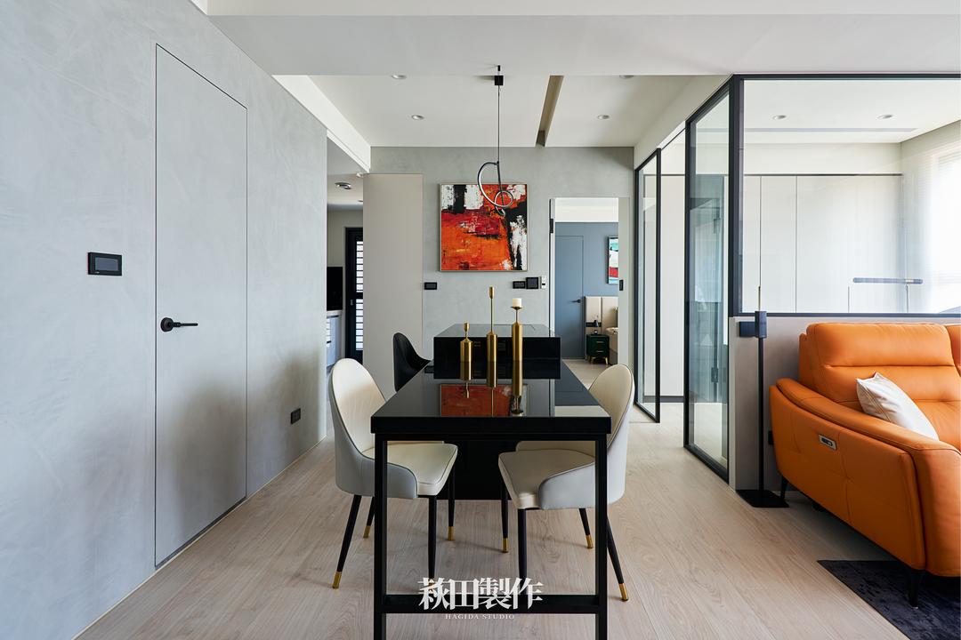 主要建材:仿清水模系統板、人造石檯面、磁性軌道燈、