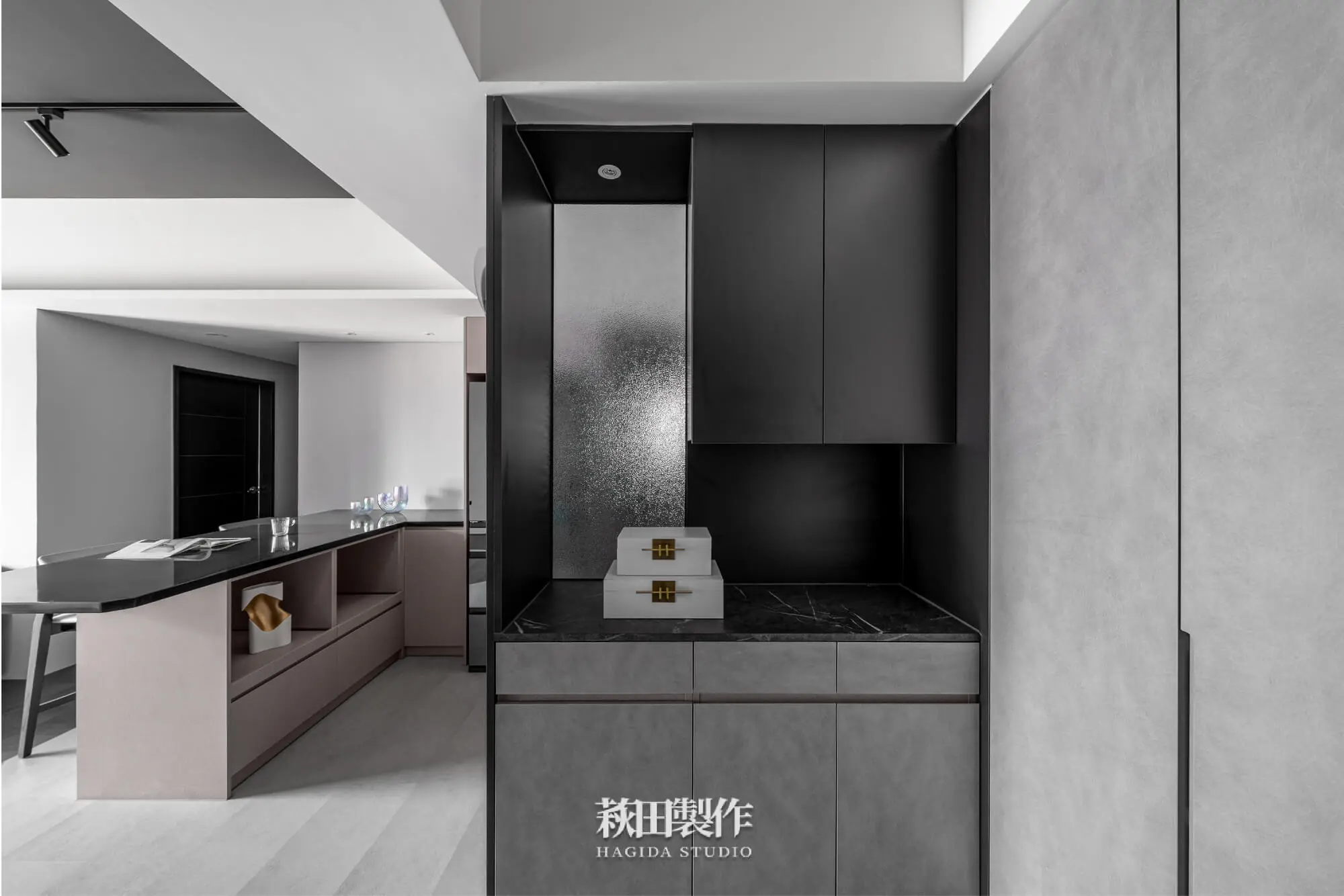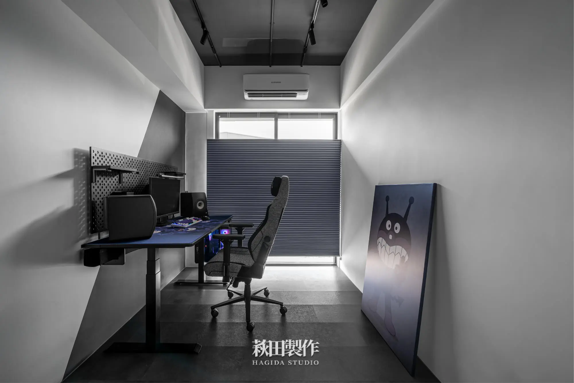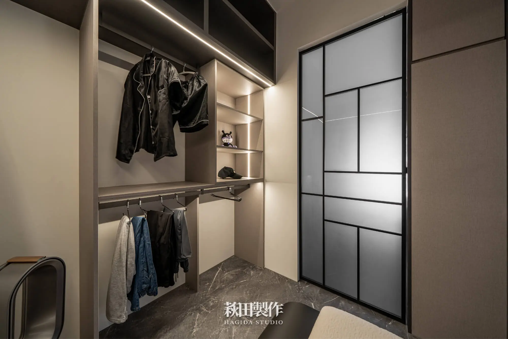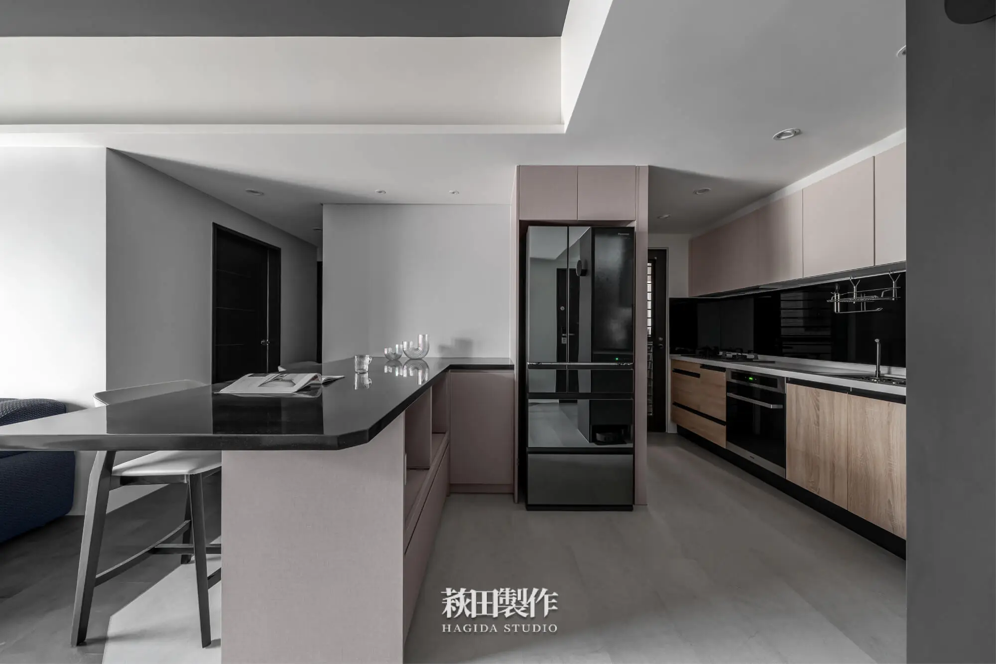 主要建材:系統板、木作、馬來漆、跳色乳膠漆、人造石、銀霞玻璃、灰玻璃、噴砂玻璃、超耐磨SPC地板、黑色鋁框、遮光捲簾、風琴簾、緞面蛇簾、紗簾、鋁條燈、軌道投射燈